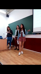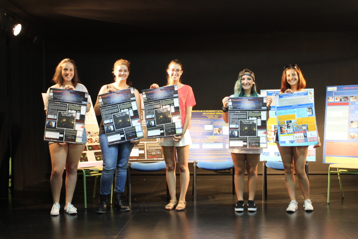 Dos de nuestras alumnas y sus compañeras de grupo delante de sus pósteres.